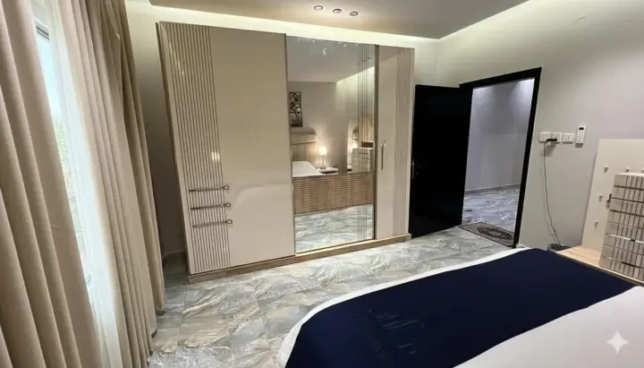 تقع في شرق الرياض قريبة من شارع أبي الاسود الدؤلي ومحطة قطار خشم العان ومستشفى الحرس الوطني وإستاد الملك فهد . صُممت بألوان مريحة مؤثثة بأثاث مودرن. يوجد شاشة 70 بوصة. تتميز بمساحتها الواسعة وخصوصية تامة بدخول ذكي. أتمنى لك إقامة سعيدة.